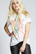 Crafted from 100% super-soft cotton fabric with a flattering fitted cut, distressed hems, a ribbed crewneck, and sewn cuffed short sleeves.