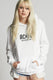 Two of AC/DC’s greatest songs are together on this epic boyfriend tee. The front features the iconic You Shook Me All Night Long from VH1's 100 Greatest Songs of the 80s, while the back pays tribute to Have A Drink On Me from their legendary album, Back In Black. The visually distressed details and raw, unfinished hems are an intentional design choice that adds an authentic, vintage touch to it.