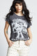 This Blondie Heart Of Glass One Size Tee features a striking photo graphic of the band, surrounded by starry details that give it that dreamy, rock 'n roll edge. Don’t miss out—this one’s giving main character energy. Our "one size fits most" tee is made with soft cotton fabric, a crew neckline, and short sleeves for a relaxed, adaptable fit across various body types.