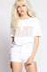 Go for an effortless, casual vibe. Tuck the tee into high-rise mom jeans or vintage-cut denim shorts. Layer it under a simple cardigan or an unbuttoned plaid shirt and finish the look with low-profile sneakers.